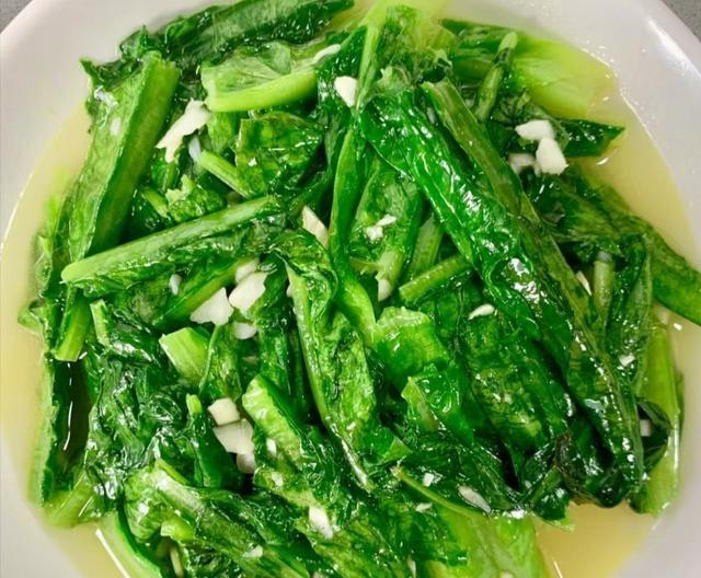油麦菜洗好切段,热油炒香蒜末,倒菜快速翻炒,加一勺蚝油、一点点盐,炒到菜变软就关火,脆嫩又入味,几分钟就好。