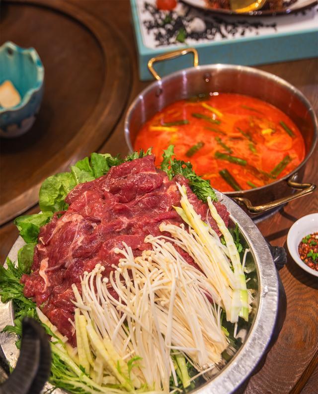 1:黔汤小黄牛。天然放养的平坝小黄牛,肉质鲜美有弹性。而酸汤更是贵州美食的代表作。把切成薄片的牛腱子肉放进去,只需涮上10秒,又嫩又鲜又酸爽,味道鲜美。而且酸汤泡饭也是很美味的,特别开胃!