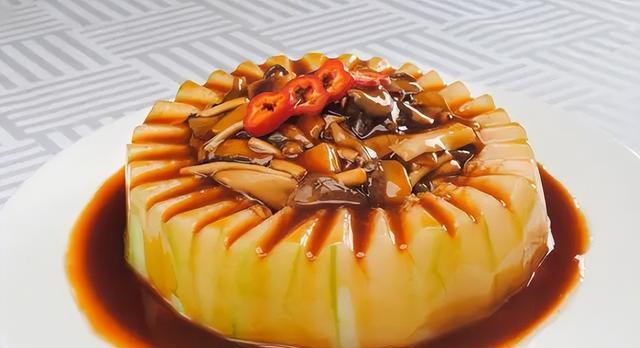 4、将冬瓜取出,表面淋上煮制的食材即可。