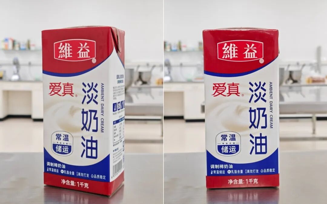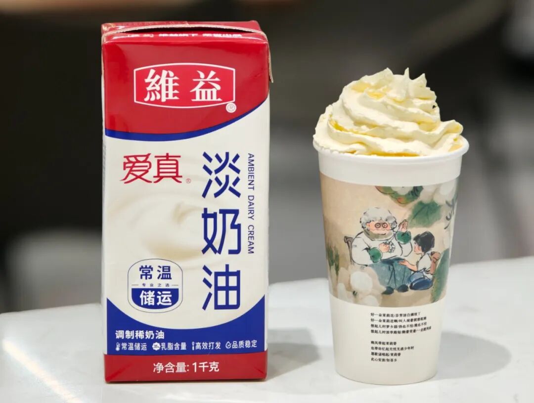 针对这个行业痛点,全品类奶油供应商维益近期全新推出了一款爱真常温淡奶油。