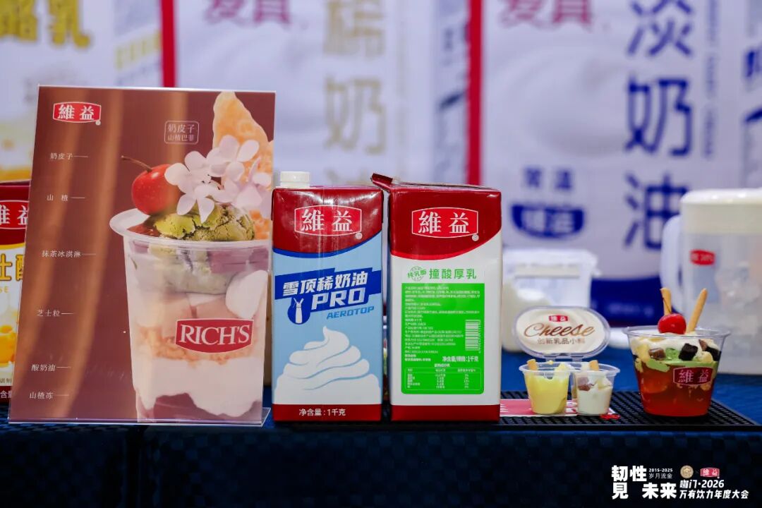 除此之外,维益依托工艺积累持续推新,比如可直接用于饮品中的鸡蛋布蕾云顶奶霜、适配水果茶的撞酸厚乳、提升醇厚感的芝士酪乳等,都为品牌带来了研发新方向。