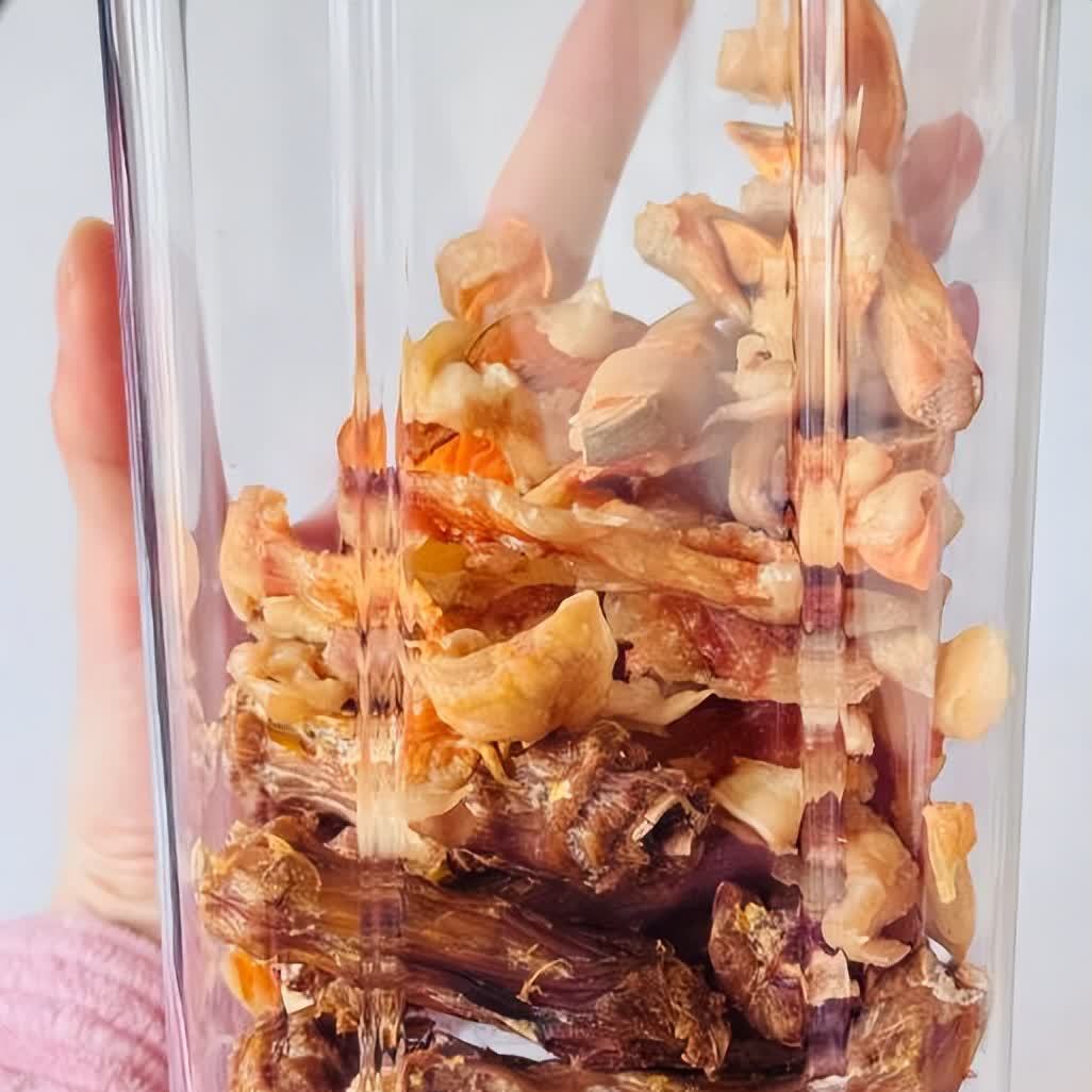 不需要加任何调味料,直接放进微波炉里面,高火叮2分钟,反复5~6次。