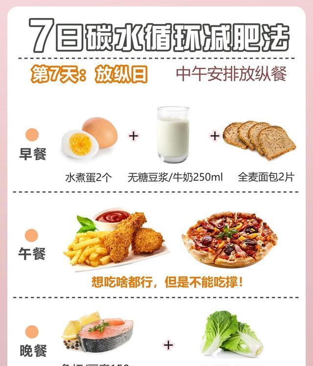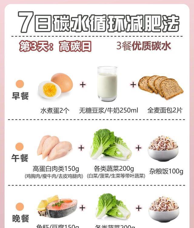 碳水循环减肥法,是一种通过控制碳水化合物摄入量的减肥方法。在这种减肥法中,很多人可以在一定的时间段内高碳水化合物低脂肪饮食,然后在另一段时间内进行低碳水高脂肪饮食。这种循环能够加速新陈代谢,帮助身体快速消耗脂肪,达到减肥的效果。