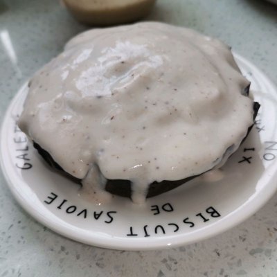 步骤11、制作酸奶酱:用大约100g的无糖酸奶+一点咖啡粉或者可可粉搅匀