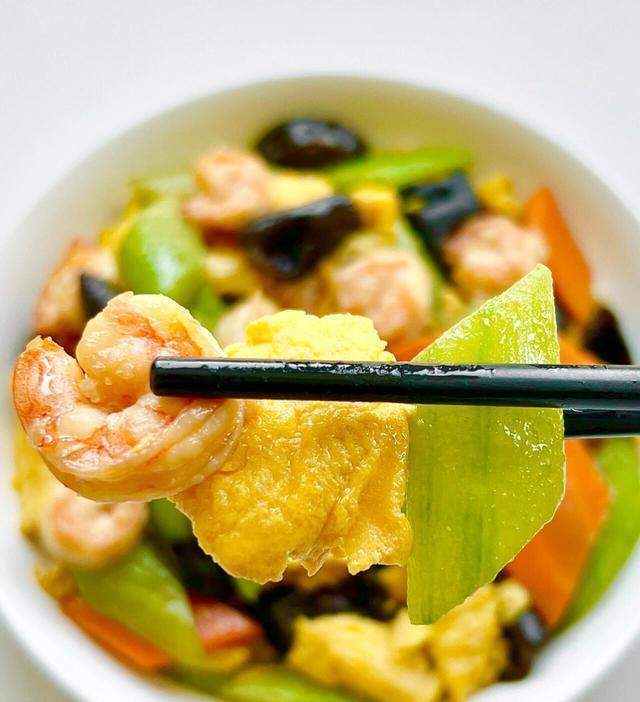 加入蔬菜:虾仁变色后立即加入胡萝卜丝和青椒丝,继续快速翻炒,加入少许盐调味,因为虾仁已经腌制过,所以盐量要适当减少。蔬菜断生后即可出锅,保持菜肴的清脆与鲜美。