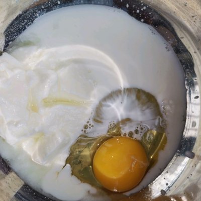 步骤1、将酸奶+鸡蛋+牛奶打入盆中