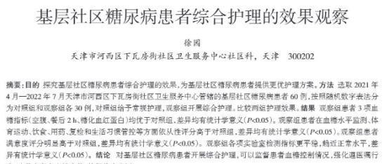 徐园.基层社区糖尿病患者综合护理的效果观察[J].中国城乡企业卫生,2025,40(04):228-230.