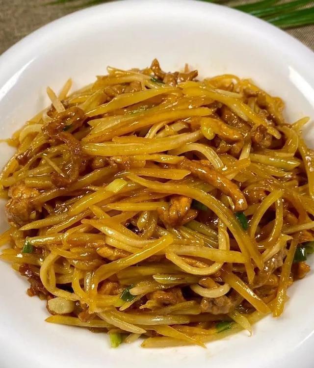5. 炒土豆丝:锅中重新加少许油,加入泡水后的土豆丝,快速翻炒几分钟,注意火候,避免炒糊。加入适量盐调味,继续翻炒至土豆丝变软。