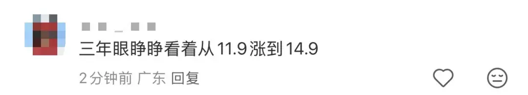• “三年眼睁睁看着从11.9涨到14.9.”