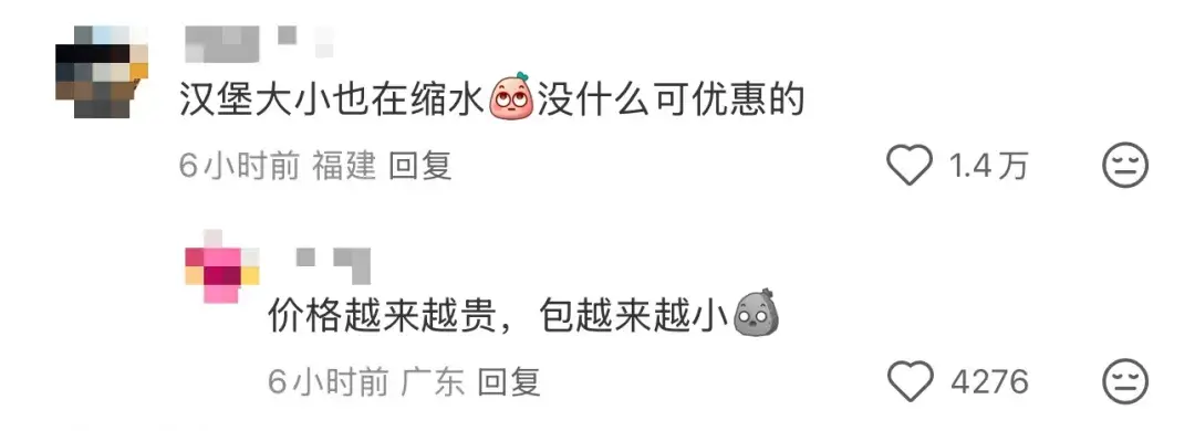 • “汉堡大小也在缩水,没什么可优惠的。”