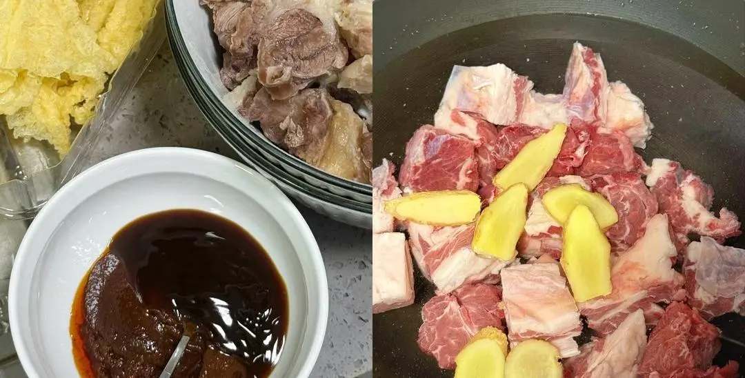 食材:牛腩、腐竹、柱候酱、沙茶酱、姜片