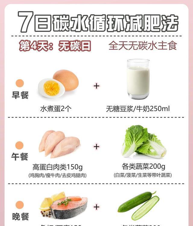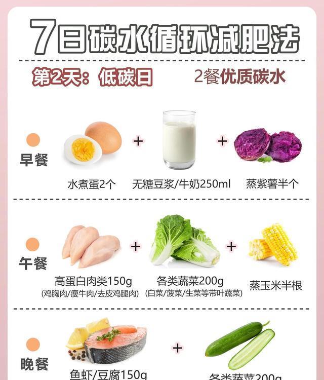 碳水循环减肥法,是一种通过控制碳水化合物摄入量的减肥方法。在这种减肥法中,很多人可以在一定的时间段内高碳水化合物低脂肪饮食,然后在另一段时间内进行低碳水高脂肪饮食。这种循环能够加速新陈代谢,帮助身体快速消耗脂肪,达到减肥的效果。