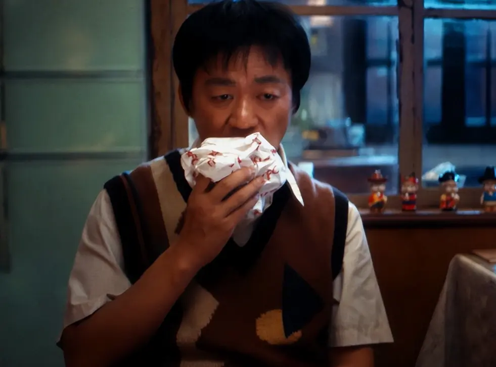 《棋士》里王宝强吃汉堡那幕,把人物的窝囊,与慢慢下定决定的恨都转换得淋漓尽致,观众光是看他大口大口吃东西,眼神变化就知道人物内心想什么。