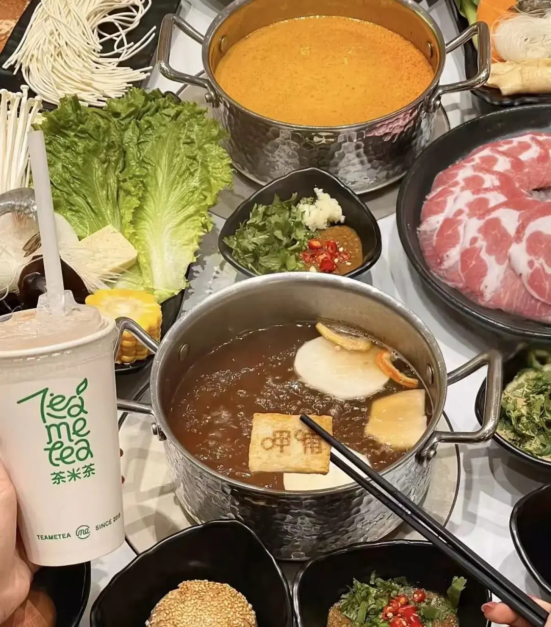 锅底共提供10款风味,如原味、菌汤、麻辣及印度咖喱、泰式冬阴功等特色口味,每份13.91元。顾客还可选择“mini鸳鸯锅”,一次性品尝两种汤底,仅需15.91元。