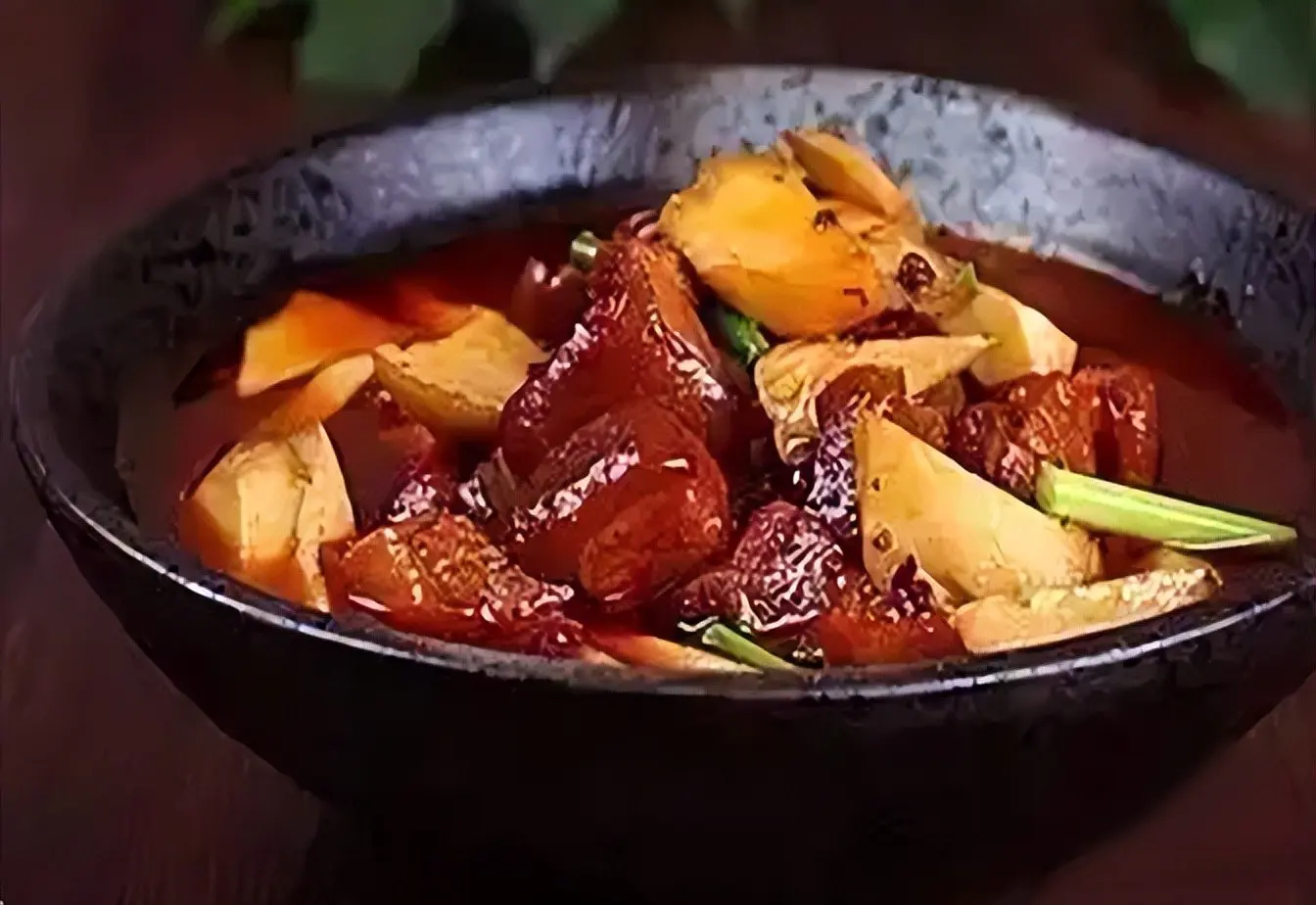 收汁与融合风味:焖煮后期开盖收汁,加入花椒、麻椒(可选)提麻香,最后用水淀粉勾芡使酱汁浓稠;收汁时不断翻拌避免粘锅。