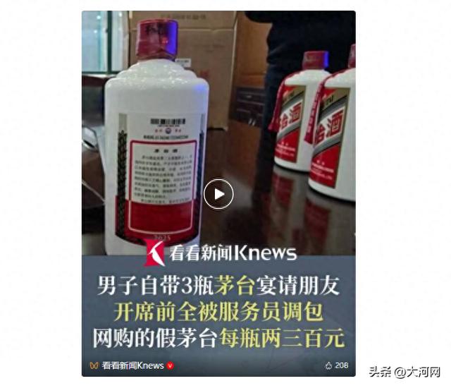 据看看新闻1月6日报道,近日,上海闵行,市民王先生自带三瓶飞天茅台到饭店宴请亲友,可开席时,细心的王先生却发现餐桌上的三瓶“茅台”好像都不是他带来的,而此前包厢服务员严某上菜之前多次动了这三瓶酒。