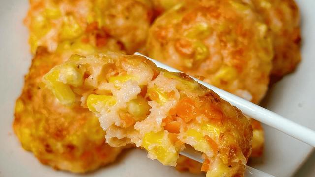 做法:甜玉米剥出玉米粒,火腿切成小丁;鸡蛋打入碗中,加清水和盐搅匀,倒入面粉,拌成无颗粒的稀面糊;放入玉米粒和火腿丁,拌匀;平底锅刷油,开小火,舀一勺面糊摊成小圆饼,煎 1 分钟后翻面,再煎 1 分钟,直到饼熟透、边缘微焦即可。咬开能吃到玉米的颗粒感和火腿的香味,娃一口一个停不下来。