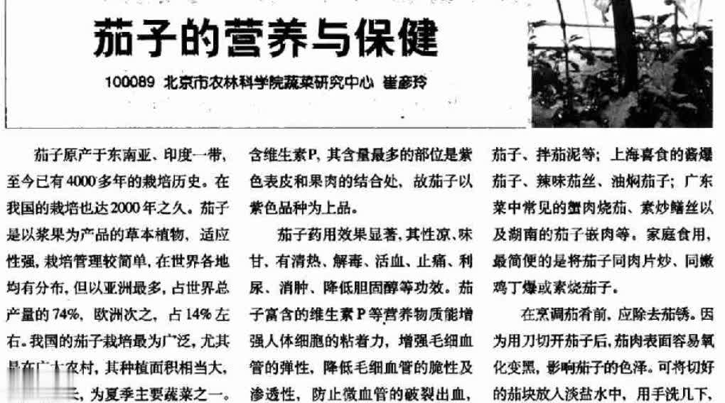 [1]崔彦玲.茄子的营养与保健[J].蔬菜,2000,(12):35.