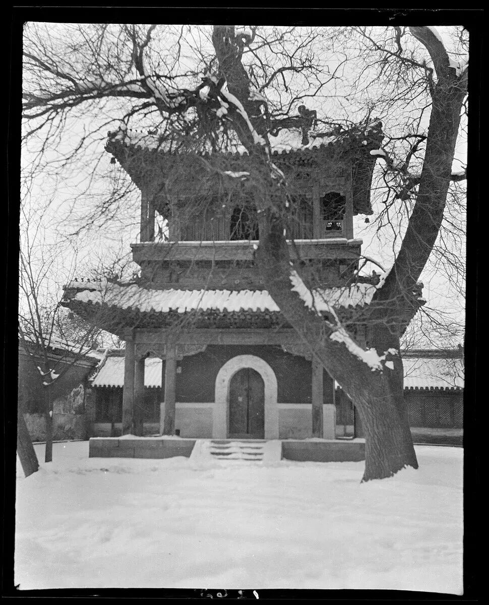 1918年,雍和宫鼓楼雪景。 甘博摄