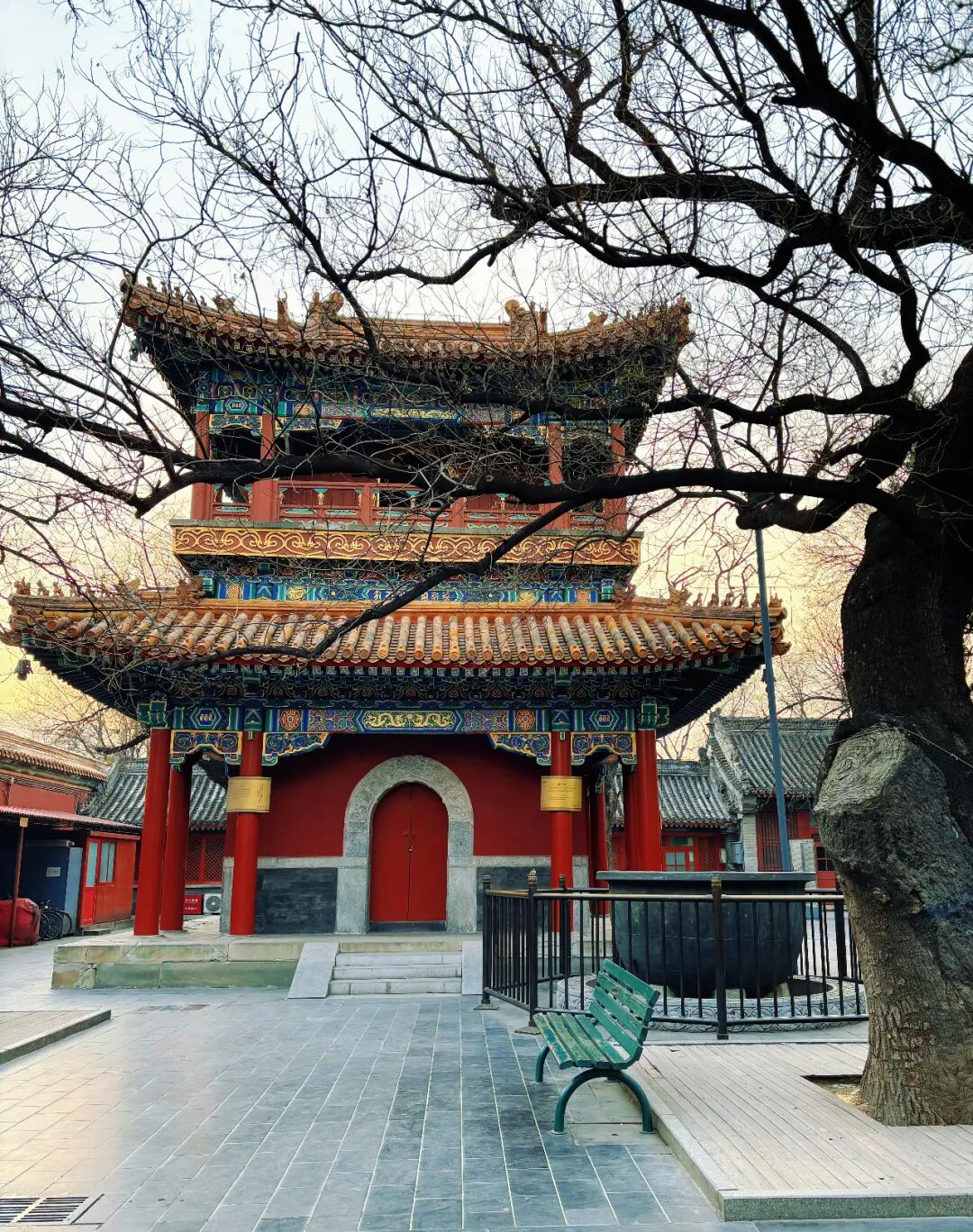 寒冬时节,雍和宫的香火依旧旺盛。从雍和宫地铁站东南口出来,就会闻到一股浓烈的香火味儿,循着香火味儿向南走不远,便来到雍和宫北牌楼下。因为是工作日的关系,游客不算太多,大部分是前来烧香礼佛、请手串的年轻人。