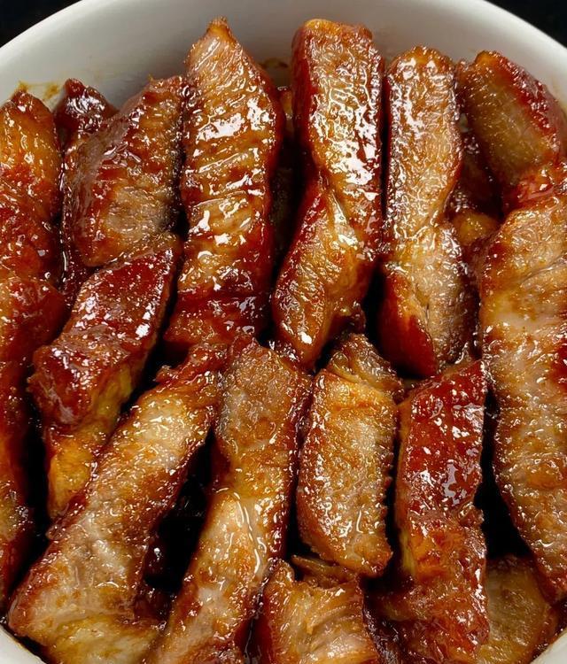酥香的蜜汁,叉烧肉这样做真的是泰香了,巨好吃!咸甜鲜香,软嫩多汁,香味四溢,一块一块嘎嘎的香,好吃到舔手指!肉嫩鲜香,每块叉烧肉都裹满了酱汁,配上白米饭,味道真的绝了,每次做的都不够吃,就是有点费米饭!一上桌就光盘,全家人吃完都赞不绝口