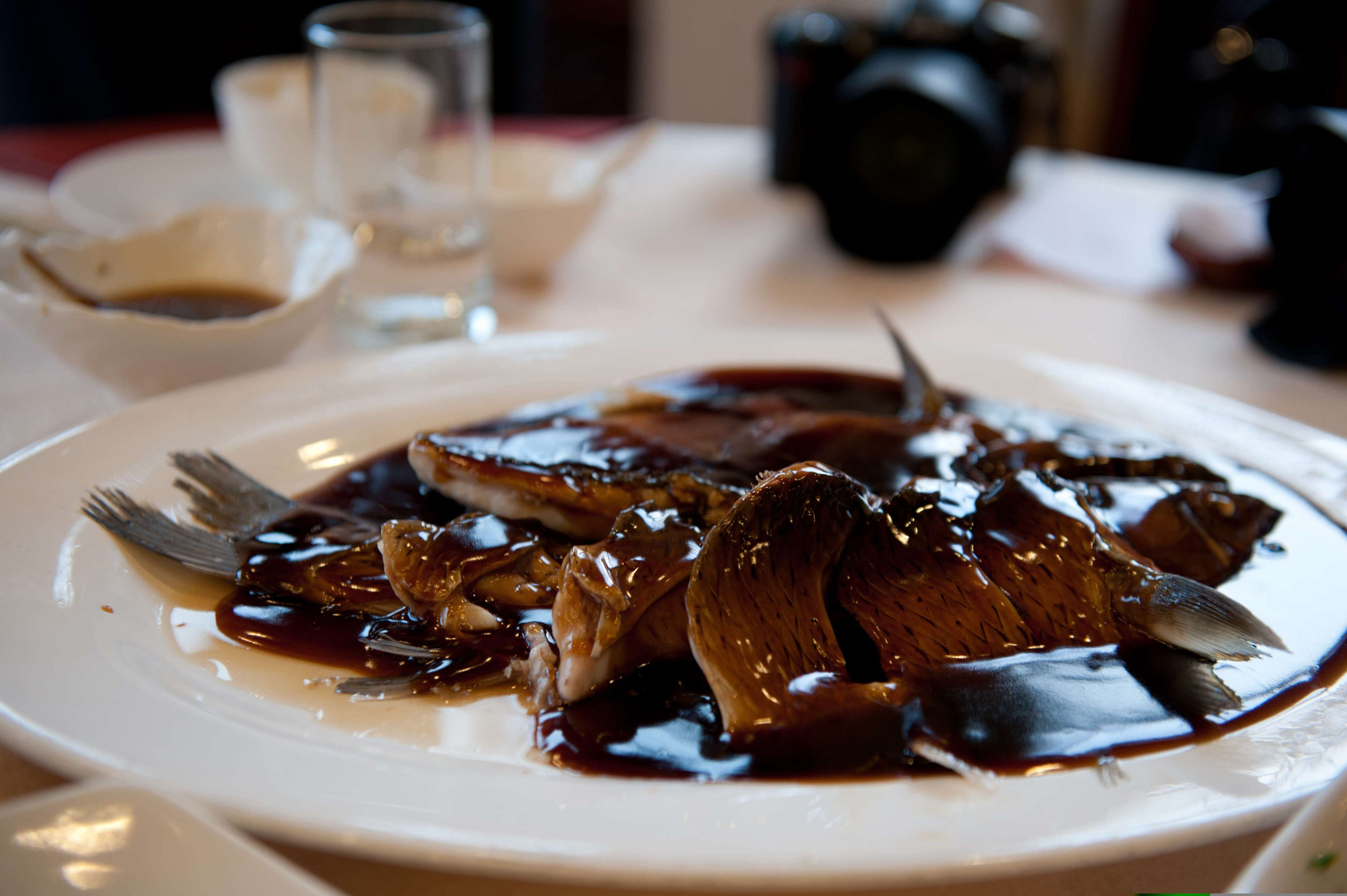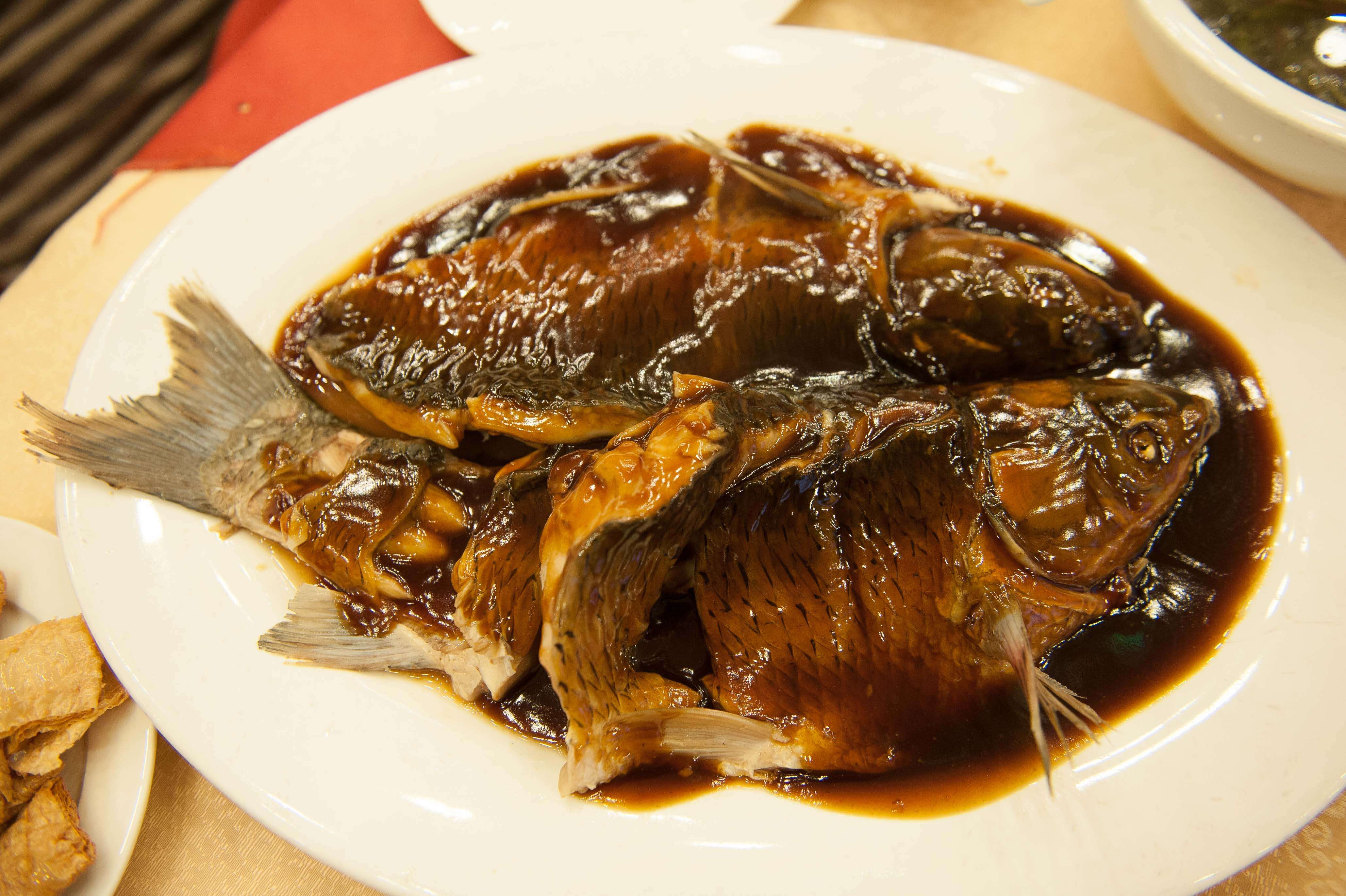 其实真实的西湖醋鱼,至少我这个出生在上海,生活在江苏的人,还是很能够接受的,这道菜真正的讲究,是草鱼的本味,我记得这个草鱼是极其讲究的,大体要求是1斤到一斤半的样子,不能太大也不能太小,草鱼本质是有土腥味的,所以用来做西湖醋鱼的草鱼所生长的水质也极其讲究,水质不好,土腥味重了,这道菜就被人嫌弃。所以你看楼外楼在西湖边专门有个鱼池临时养着用来烧西湖醋鱼的草鱼,当然,西湖的水质是不能养做西湖醋鱼的草鱼的,这只是个临时存放的地方,真正的符合要求的草鱼来自哪里,可能是商业秘密。