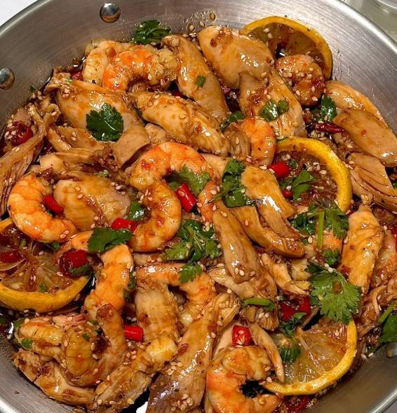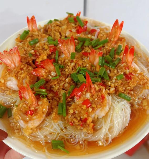 这道菜是典型的“伪高端”菜。端上桌盘子周边摆着一圈红色的虾,中间是吸满汤汁的粉丝,看着像大酒店几百块的招牌菜,其实做法简单到离谱。