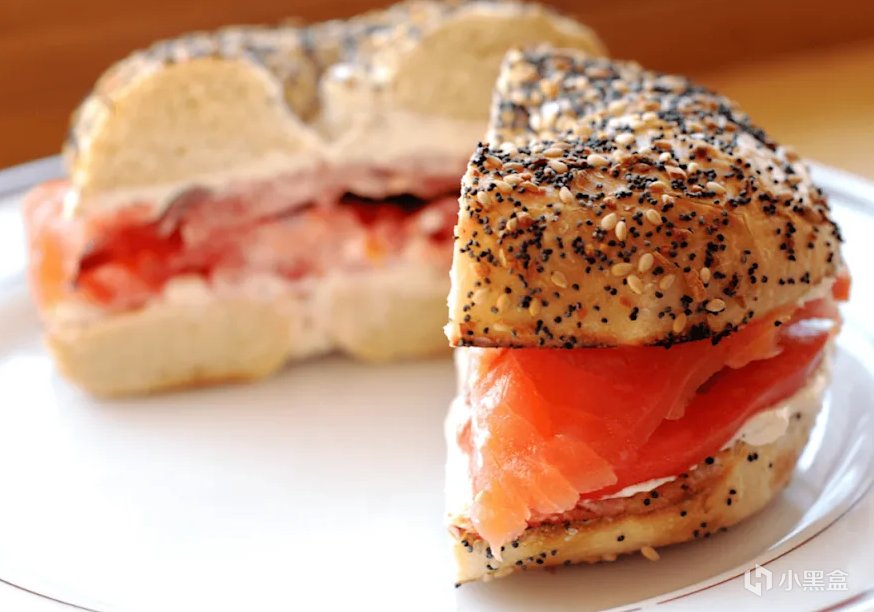 这是纽约的传奇早餐。贝果和腌三文鱼(lox)都是欧洲移民带来的传统,在纽约相遇并演变成了经典的纽约早餐三明治。