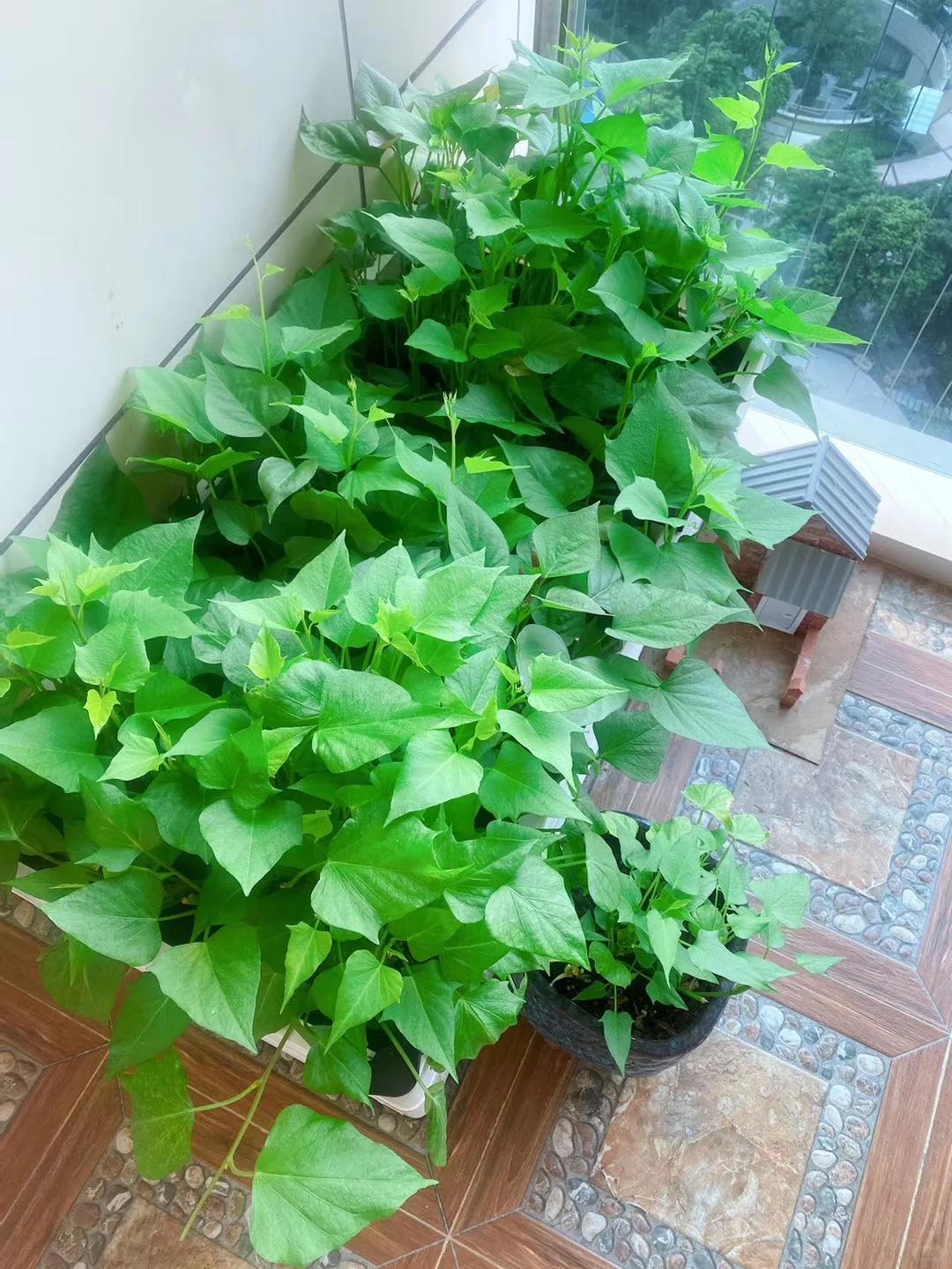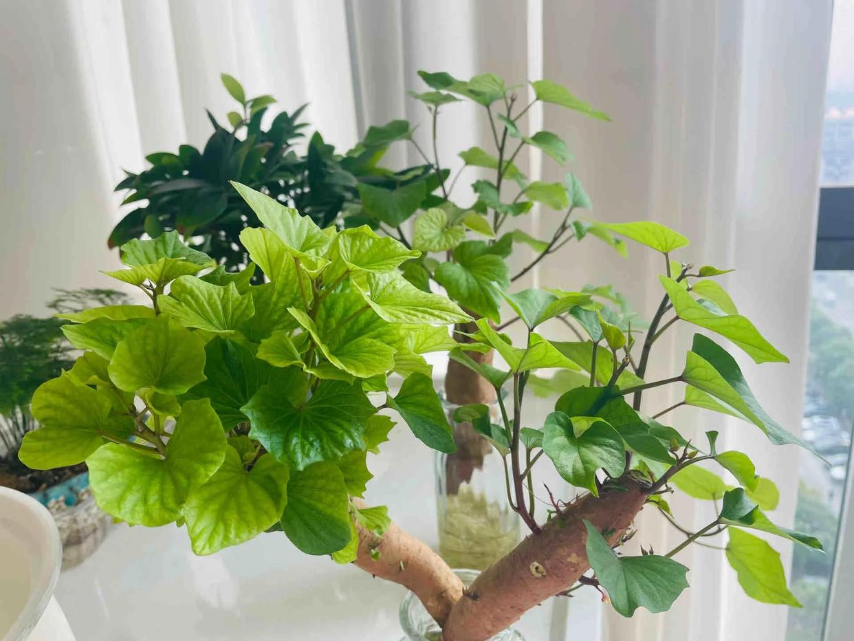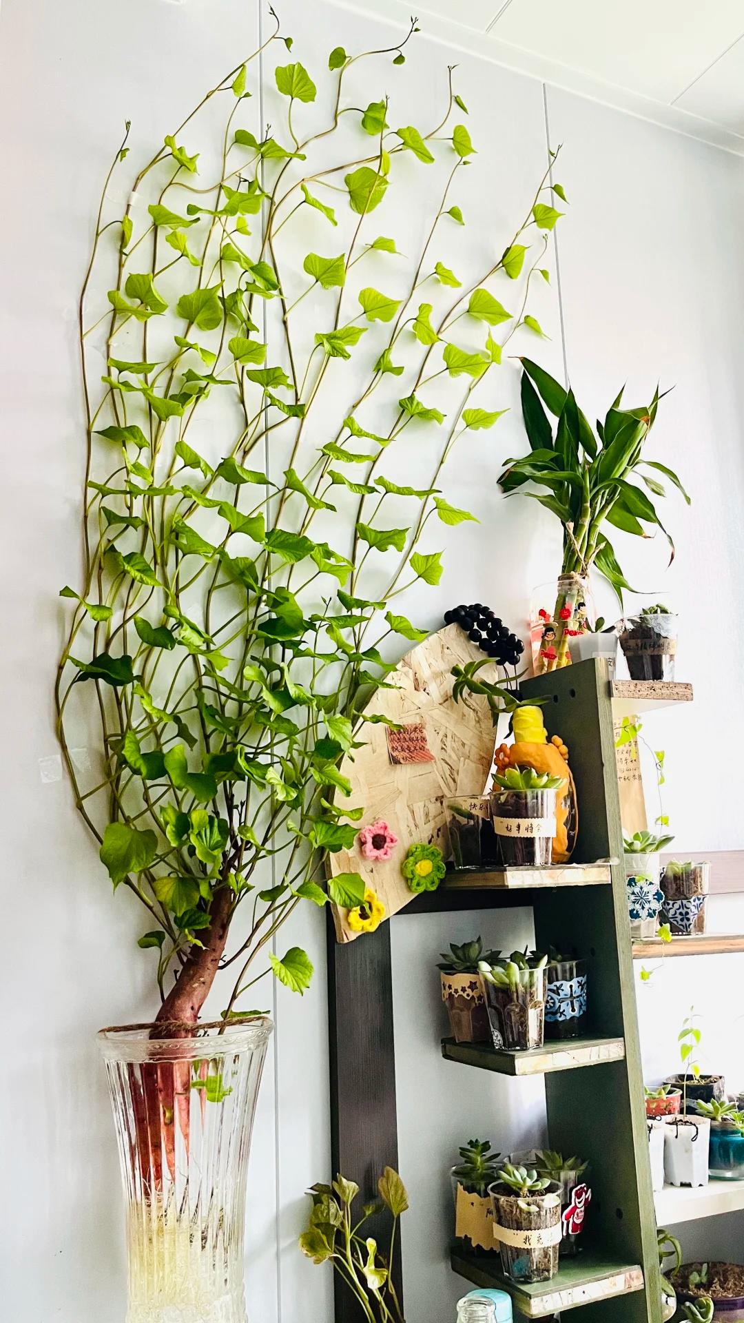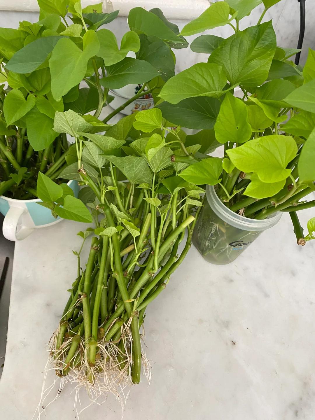 ——发芽的红薯太多怎么办,当然是养起来,长出的枝枝叶叶,不但好看,还很好吃!