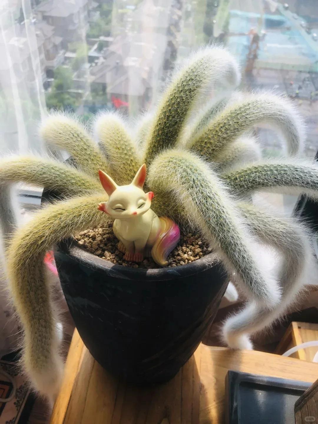 这盆九尾狐长得十分健壮可爱,小狐狸玩偶也是可可爱的,看一眼,就会被它的萌态所喜爱。