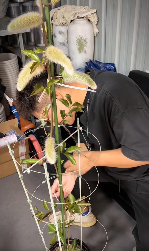 小伙子平时照料得很仔细,每天都会检查其生长情况,定期浇水施肥,还会根据天气变化调整养护方法。