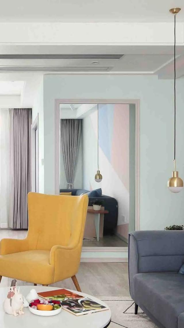 整体的设计风格定格为自然简约的北欧风,灰白木调的空间加入了清新撞色色彩,主打柠檬黄色,营造出温馨而又清雅明快的空间氛围。