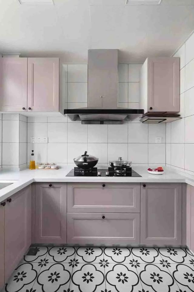 将北阳台纳入到厨房后,使用面积足够宽敞。厨房选择了油烟小的集成灶,节省的位置还可以做吊柜。