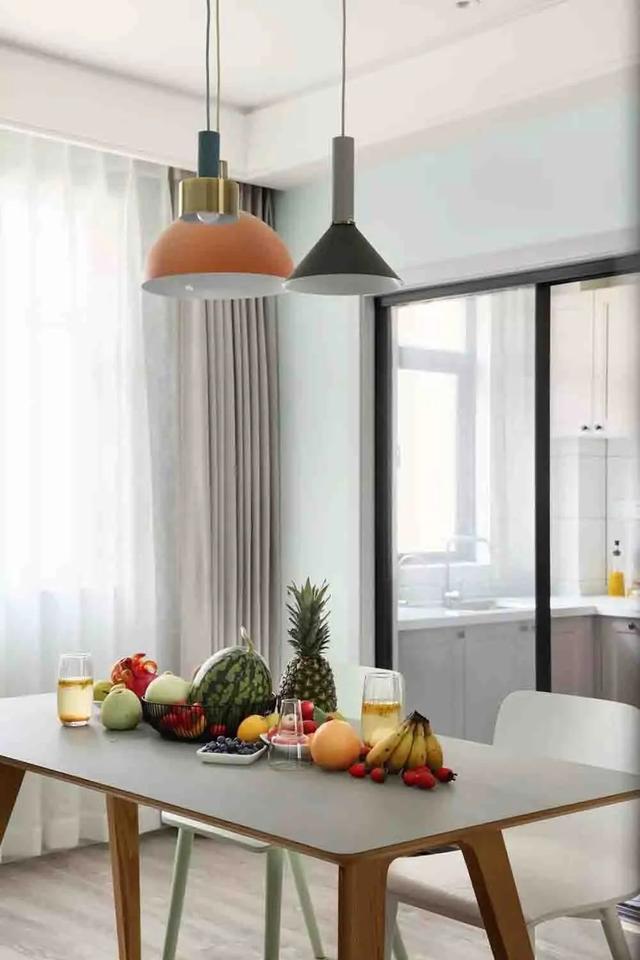照明上除了主灯,还选择了辅助光源,两侧的吊灯给人一种高雅且充满艺术感,对于氛围的营造也是很不错的。