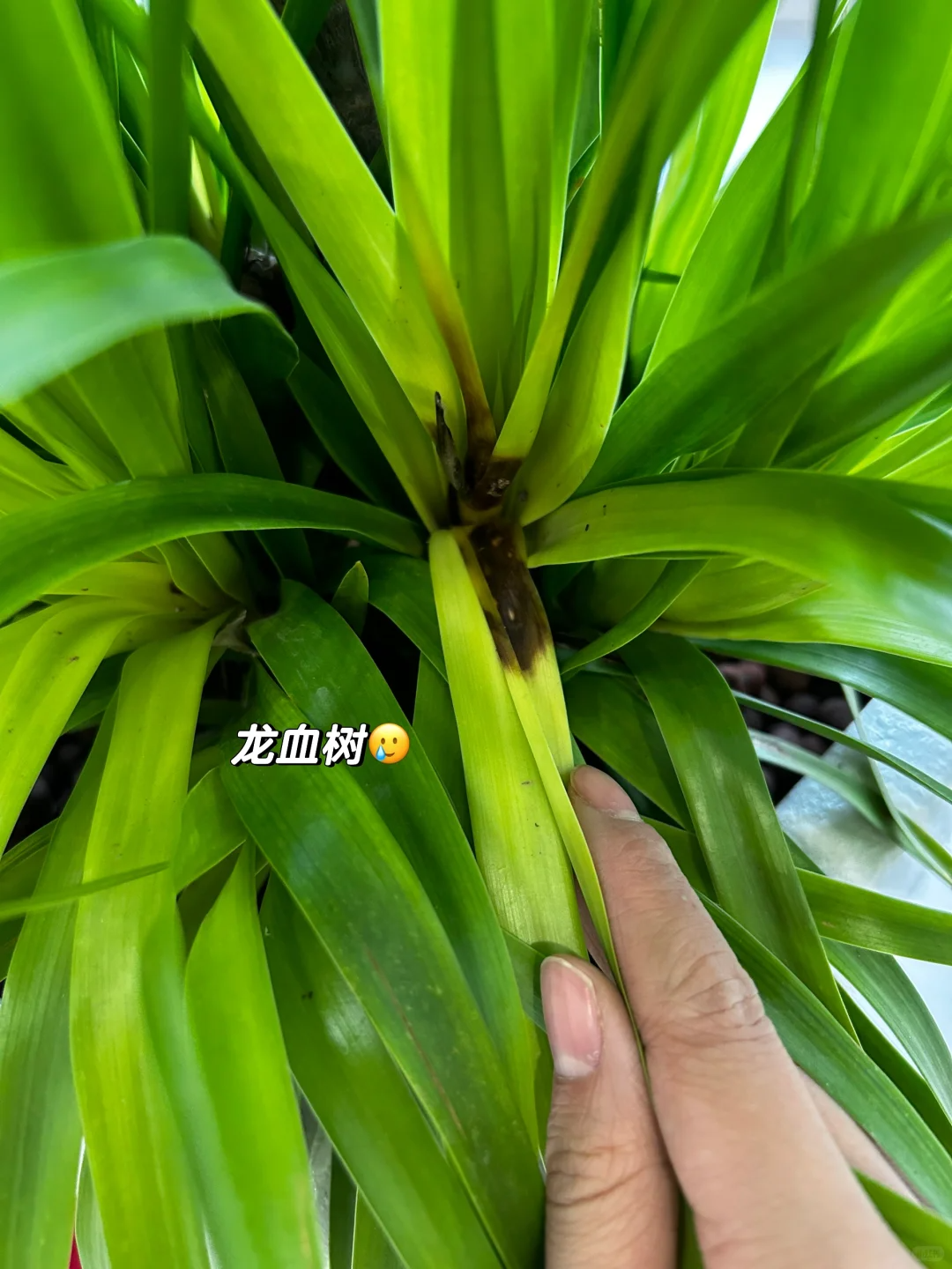 又比如,浇水过量时,叶尖叶心会腐烂,根茎会逐渐的转成褐色并腐烂。
