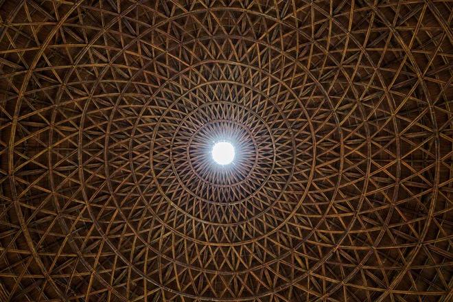 使用传统拱结构,覆以当地棕榈木