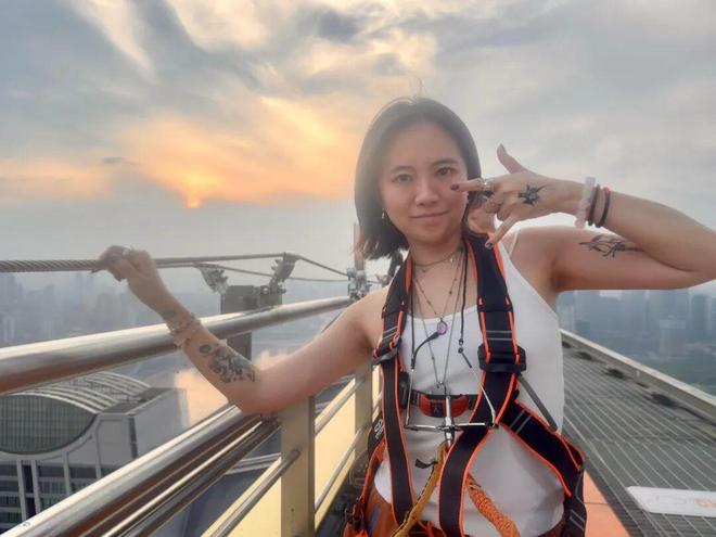高度约250米 ,身旁没有栏杆的阻挡,但有 安全绳让我安心当个“空中飞人”~