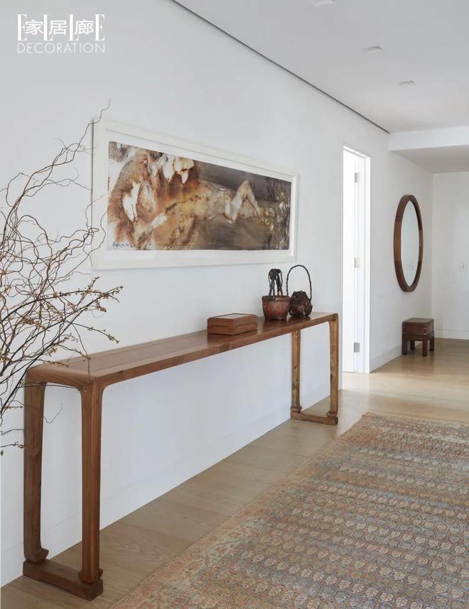 定制楠木长桌出自楠书房,镜子出自Desiron,
