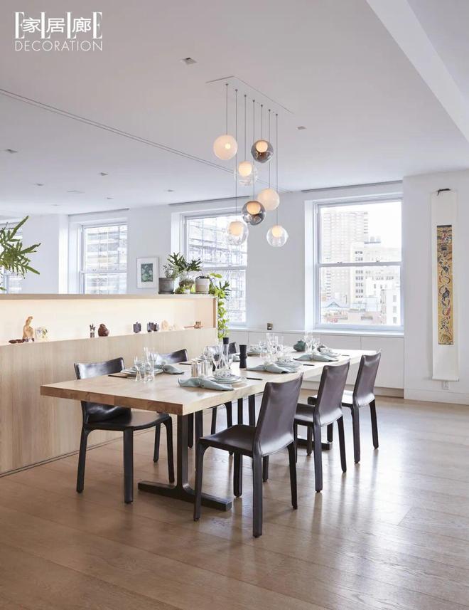 Dana一贯倾向于以建筑思维去构思空间,“空间是一个框架,所以色调很中性,墙壁是白色的,天花板是白色的,厨房和浴室的石材是灰色的,地板是宽幅欧洲橡木,宽木板减少了接缝,可以形成更为纯粹的水平表面。”室内陈设上,她与纽约Eric Alch设计事务所一起合作完成。整体上突出定制质感,且延续了由美国、欧洲和中国的不同文化和艺术元素组合形成的融合调性。