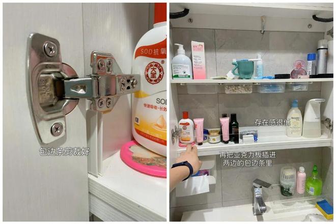 除此之外,还可以用来自制镜柜挡板,这样再开柜门时,就不用担心内部的物品掉出来了。