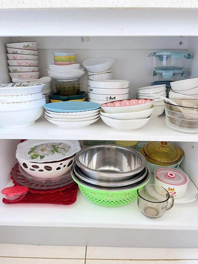 网友@圆哥:直到整理橱柜,我才发现自己有这么多闲置的餐具,难怪橱柜总是满满当当的,都不知道这些年花了多少冤枉钱,真想给自己一巴掌。