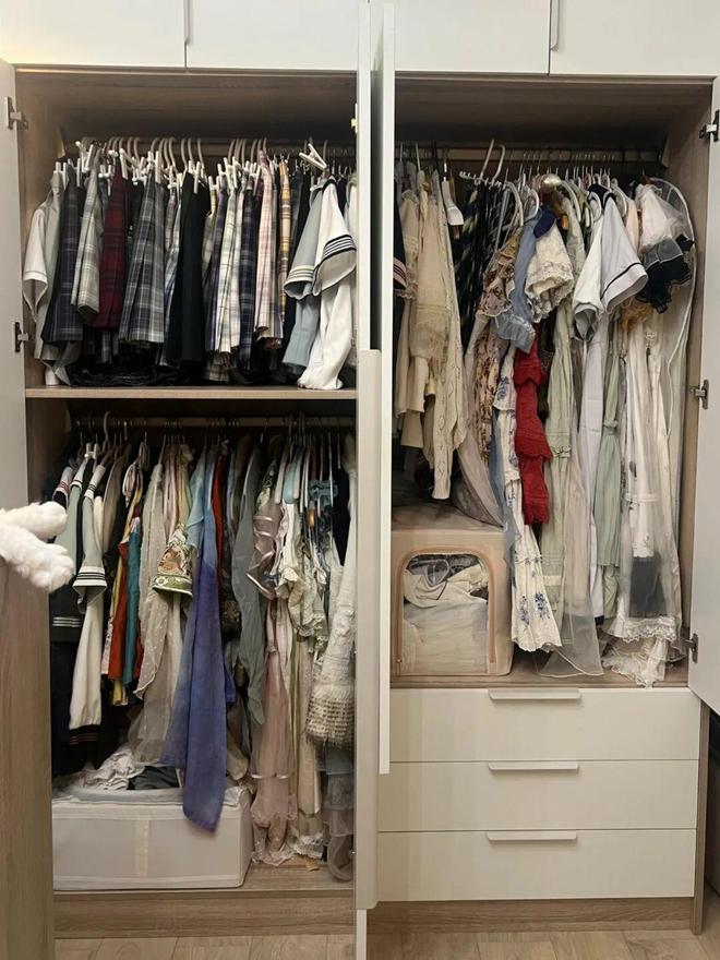 网友@好无聊:本以为有一个衣帽间,就能把所有衣服妥善收纳了,可现实却狠狠给了自己一巴掌,根本就放不下。也不知道自己哪来钱买这么多衣服的,真不能再买了。