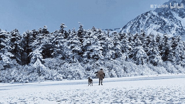 冰天雪地里,带着狗狗一起奔跑,时不时再扭上一段自创舞蹈。