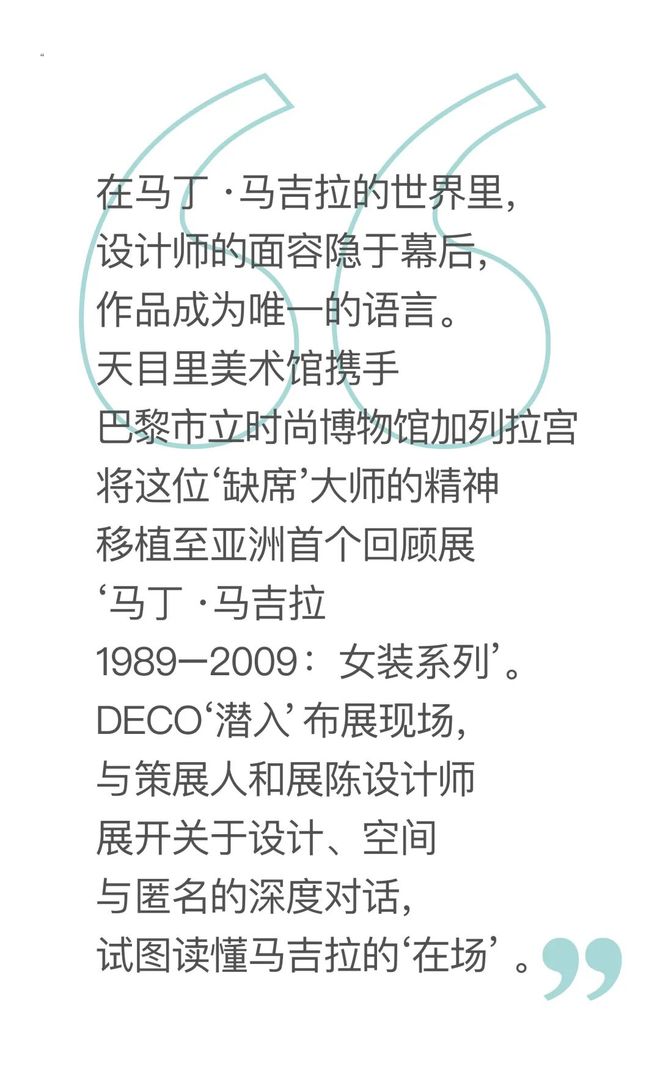 在你心目中,Martin Margiela最具代表性的符号是什么?是白色标签、蒙面模特、分趾靴还是更多天马行空的创意?欢迎在评论区分享你的和Margiela的故事,DECO将从留言中选出1位读者,送出展览门票。