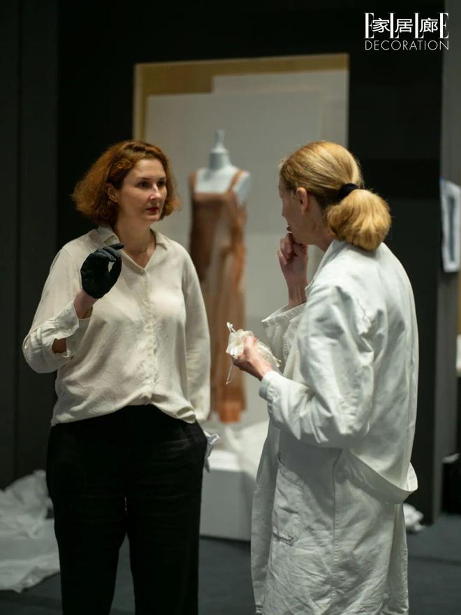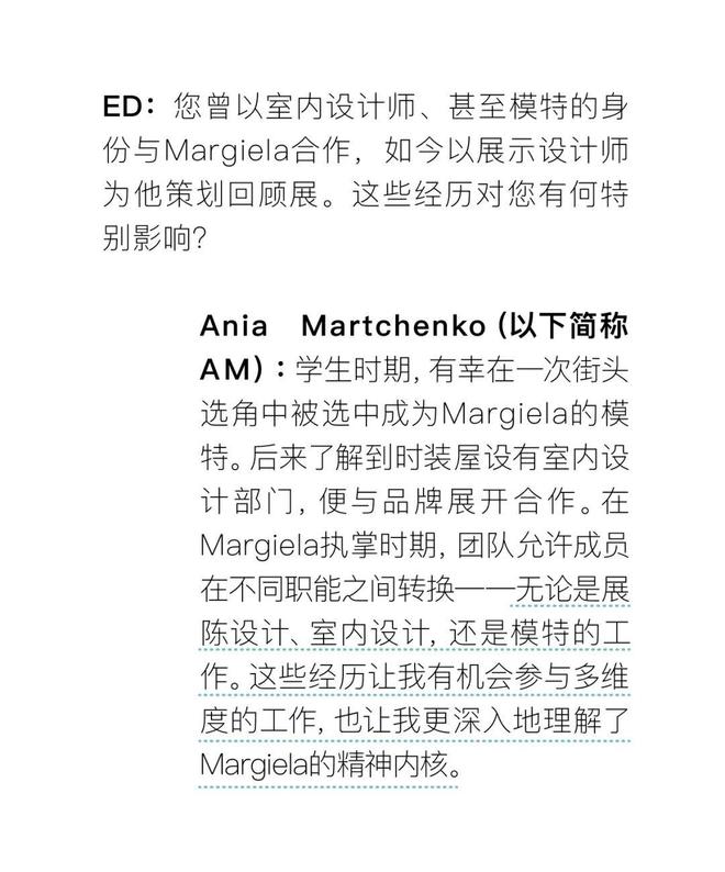 出生于俄罗斯,主修舞台美术,曾担任Maison Martin Margiela的室内设计师、展览美术指导,也曾以模特身份亲历品牌的秀场。她深谙Margiela的美学语境:展览空间并非对历史的简单复刻,而是通过场景营造,将作品置于新的叙事场域。