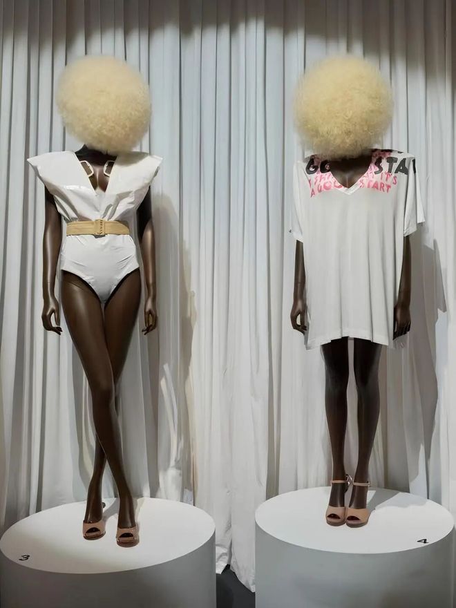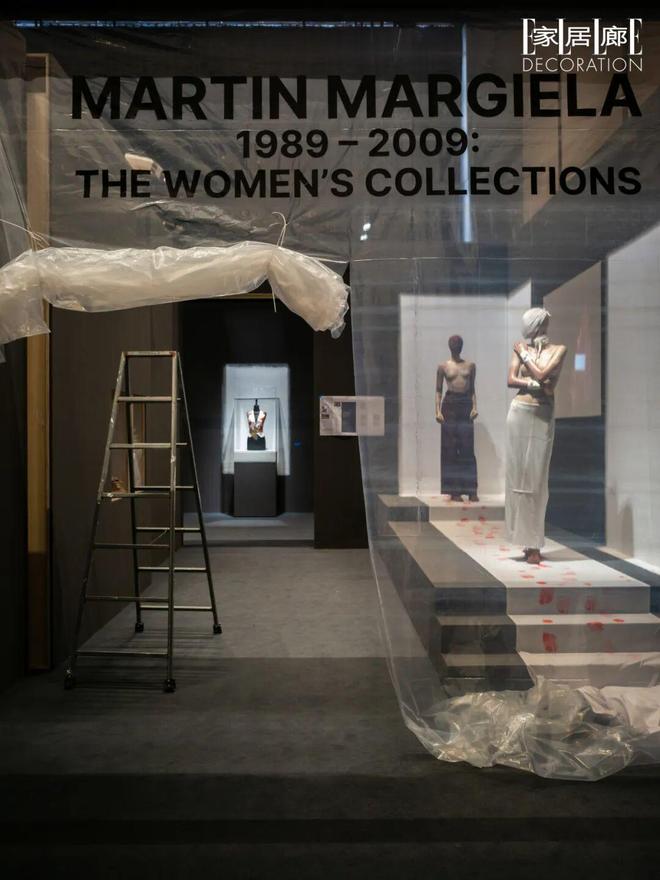 展览的序章,以一场纯粹的白色的宣言开启——这既是对Martin Margiela(马丁·马吉拉,后文简写为Margiela)标签美学的致敬,亦是对其设计原点的回归。在本次展览的入口处,一面印有“MARTIN MARGIELA 1989-2009: THE WOMEN'S COLLECTIONS”字样的透明塑料布,如“未完工”的工地隔断,将观众引入一个介于工作室与舞台之间的真实现场。