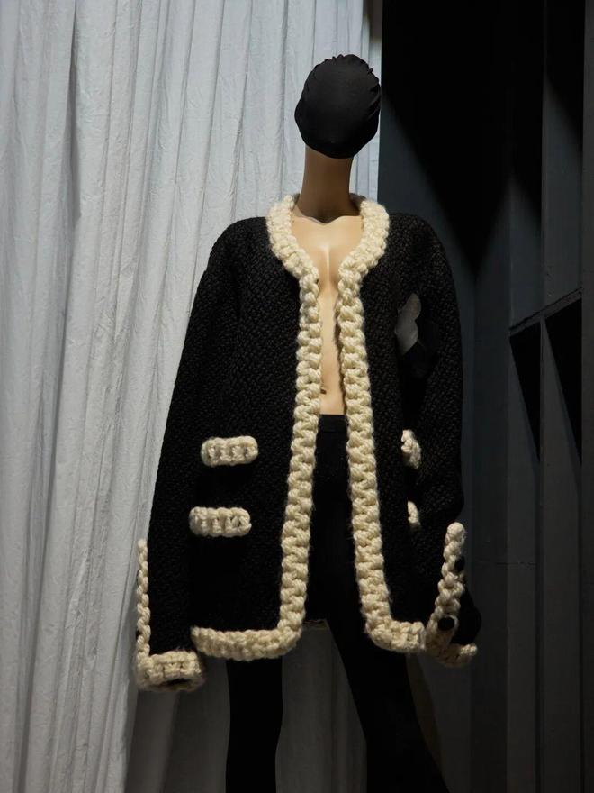 这种比例上的颠覆,后来也成为他最具代表性的语言,不断被延展和深化。展厅里,硕大的拉链、非常规比例的口袋、过厚的风衣面料,共同营造出一个成人尺度的“娃屋”。熟悉感被抽离,微小被放大,现实与记忆在错位中碰撞。