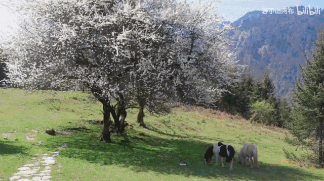 暖春,冰雪消融,岭上杜鹃花开,含笑迎风;李子花染白树梢,留下一片洁白。