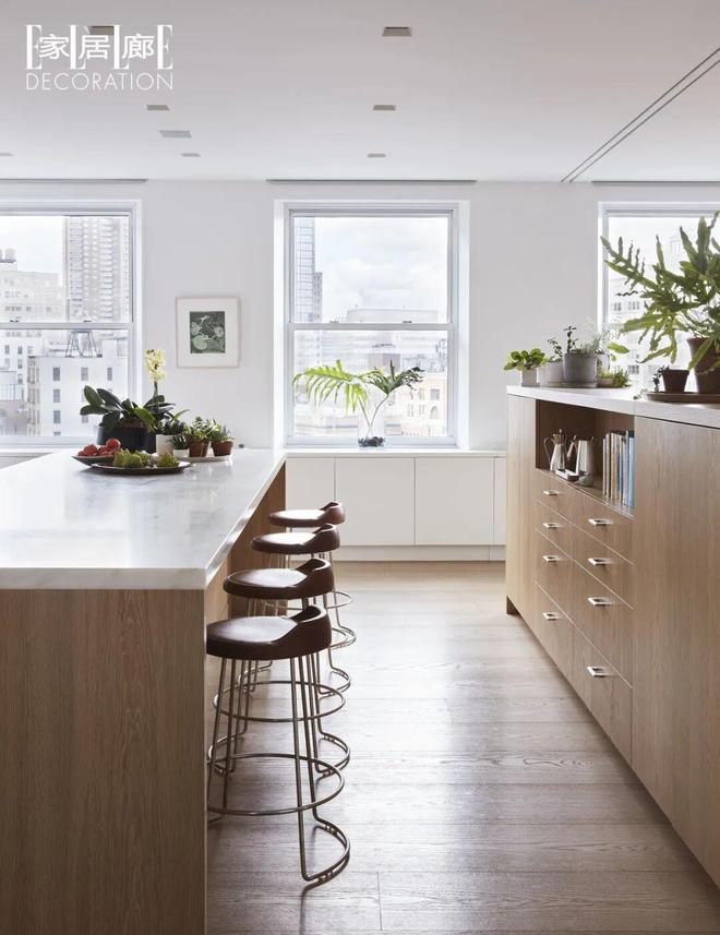 而岛台旁的皮革转椅凳则是出自McGuire。