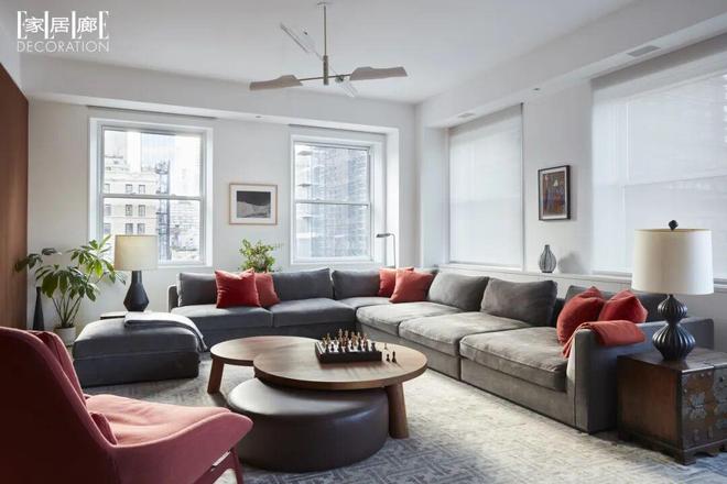 在由白与灰构建的整体宁静而简洁的框架中,Dana也点缀了大面积的红色——“我最爱的颜色”,它们局部绵延在抱枕、沙发、地毯上,折射出她内在的激情,也为空间增添了不一样的活力。
